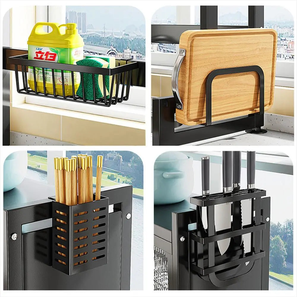 - 🍽️ Gran capacidad: Espacio para platos, tazas, utensilios, cuchillos, tablas y botellas.